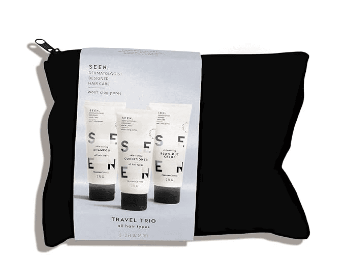 What's inside? SEEN Shampoo, Conditioner, and Blow-Out Creme.