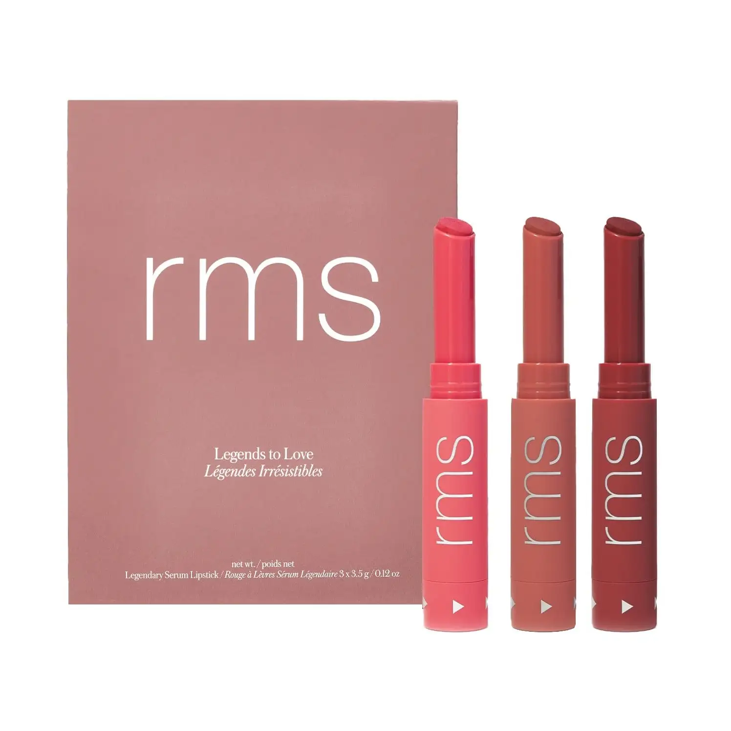 What's included? 3 full-sized Legendary Serum Lipsticks in Miranda (soft rose), Eve (rosy-red nude), and Josephine (rich cranberry).