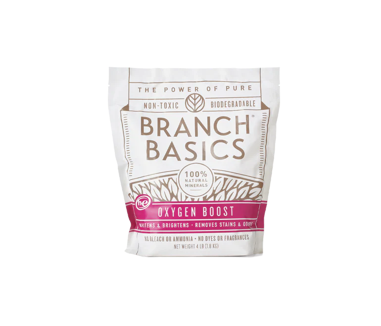 Branch Basics places a strong emphasis on exceptionally clean ingredients. Their Oxygen Boost contains just two components—Sodium Percarbonate and Sodium Bicarbonate—making it an effective, non-toxic powder. With just one scoop added to standard detergent, it tackles soiled or smelly laundry with ease. This versatile, eco-friendly option can also be used for pre-treating stains and as a disinfectant when mixed with general cleaners for floors, countertops, pots and pans, and bathroom grime. One bag covers up to 64 loads and is safe for standard and HE washing machines, as well as septic systems